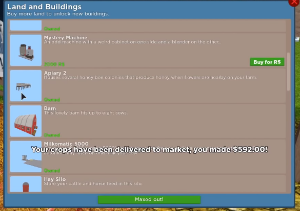 동물을 키우기 위해서는 동물 집이 있어야 합니다. 위의 사진의 하단을 보시면 Maxed out! 이라고 적혀 있는 부분이 있습니다. 거기를 클릭해서 땅의 크기를 넓히고 확장을 시킬 수 있어요! 처음에는 1천원, 그다음에는 1만원, 마지막은 10만원으로 총 3번 크기를 확장할 수가 있습니다. 또한 처음에는 집을 구입이 가능하고, 2번째는 목장, 3번째는 닭장, 4번째는 마굿간을 구입을 하실 수 있답니다.