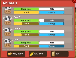 다른건 필요 없고 해피니스, 라는 영단어가 보이시죠, 그게 떨어지면 아무것도 하지 않습니다. 그러므로 동물들 옆에서 가만이 있으면 해피니스가 차니깐 꼭 관리를 해주셔야 합니다. 물론 밥도 주지 않으면 생산하지 않아요!