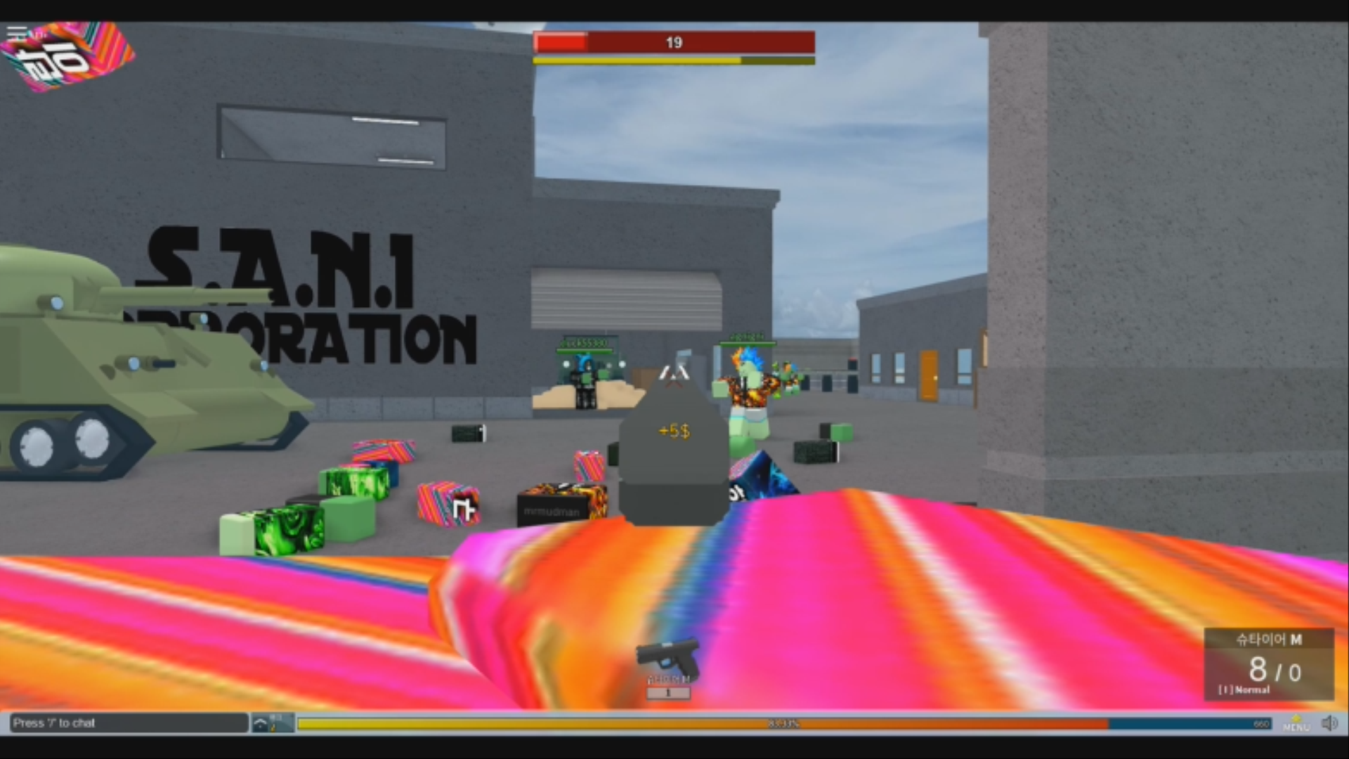 게임은 평균 로블록스 게임처럼 생겼습니다. 특이한 부분은 바로 친구들이 좀비 역할을 한다는 것 인데요, 친구가 접속을 하고 있지 않아도 자동으로 좀비로 배정되는 형식인듯 합니다. 처음에는 권총으로 시작해서 랭크를 업하면 좋은 총기를 구매를 해야 하는데, 굳이 현질을 하지 않으셔도 충분히 게임 플레이에는 지장이 없습니다.
