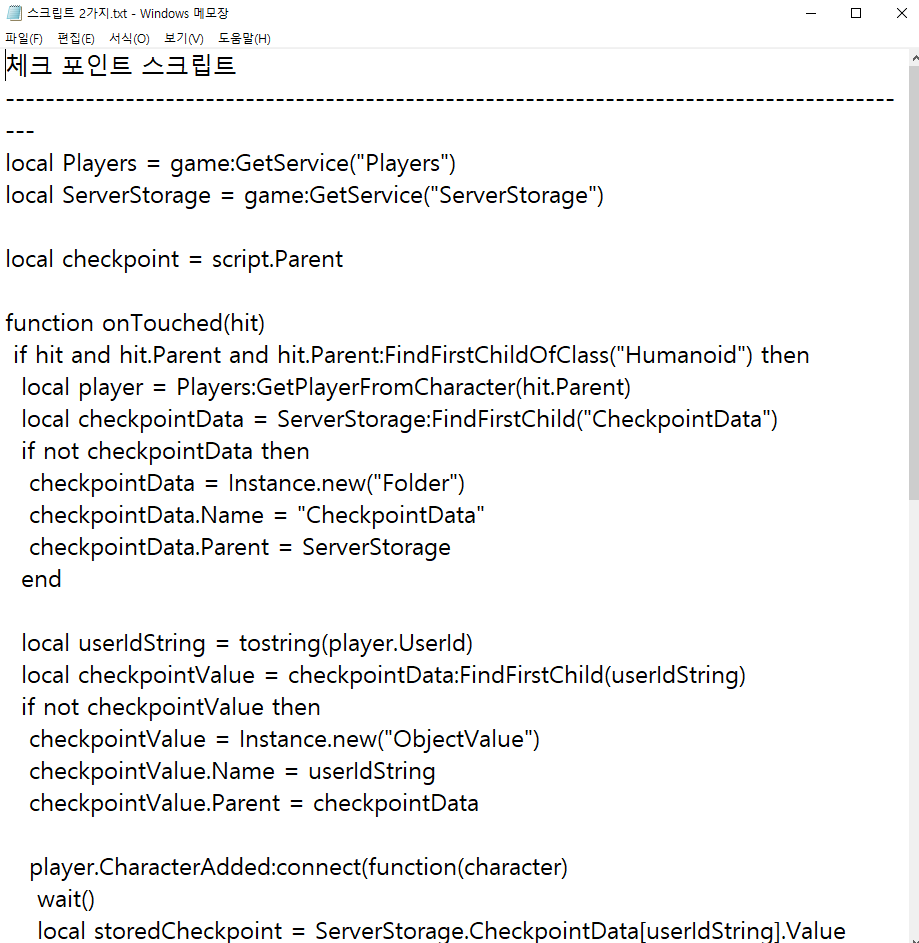 메모장을 보시면 스폰 스크립트 아래에 -------------- 이러한 구분선이 있죠? 그 아래 부분을 긁어다 주시면 됩니다.