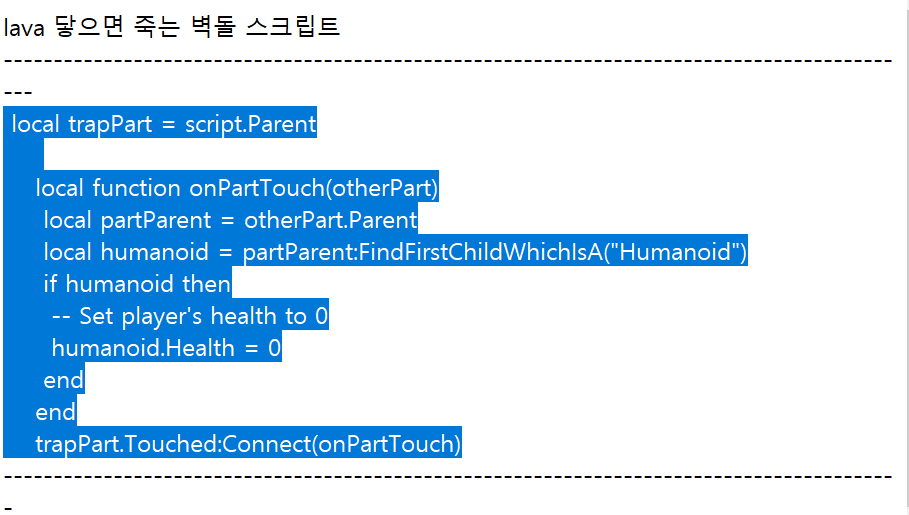 예시로 보여드렸는데요, ---- 의 구분선의 사이에 있는 글자만 긁어다가 복사를 해주시면 됩니다. 위에 메모장을 다운받으시고 복사하시면 편하게 하실 거라고 생각합니다. 그럼 여러분들 재미있게 자신만의 게임을 만들어서 친구들에게 자랑을 해보세요!!